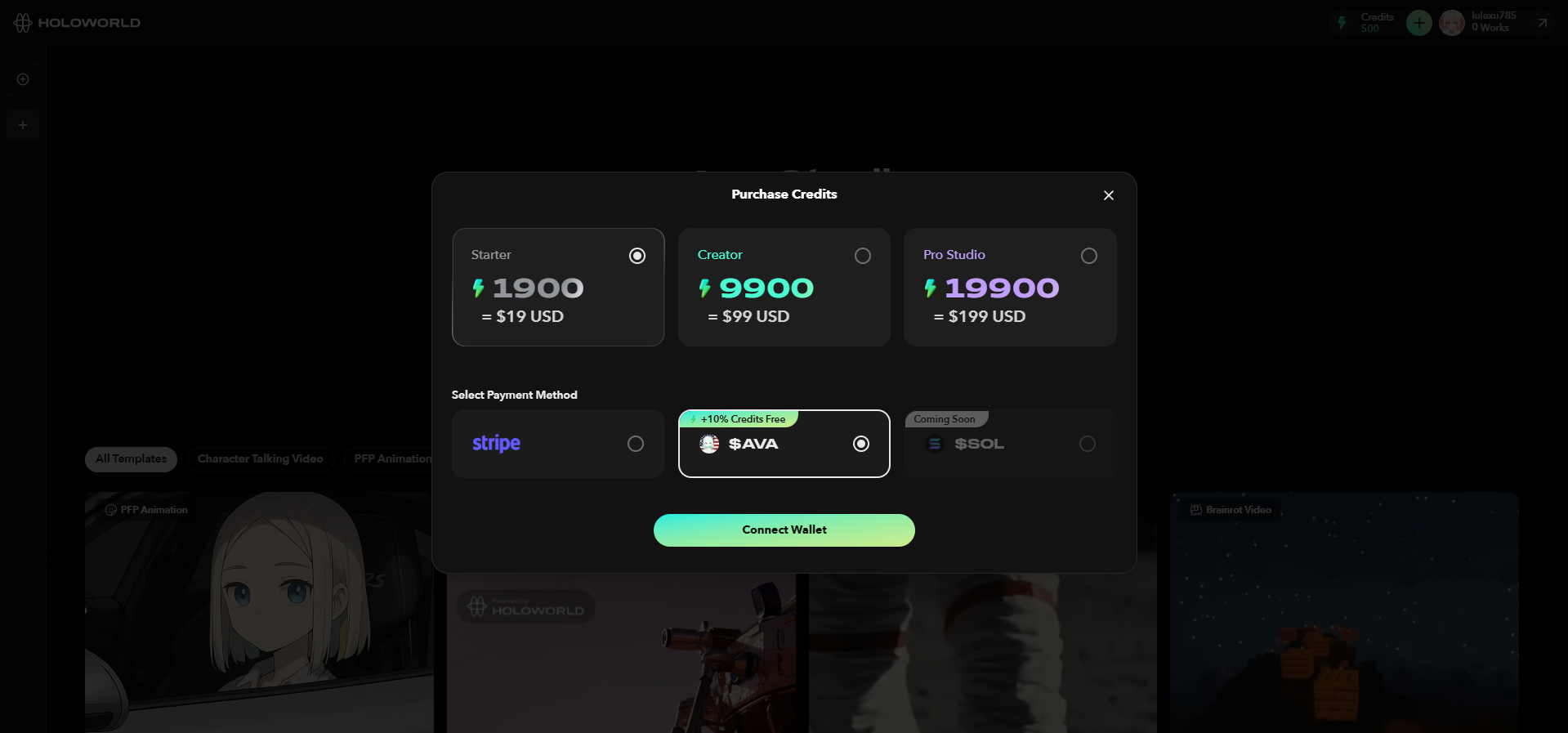 * **Tip: Pay with $AVA to get +10% bonus credits.**
